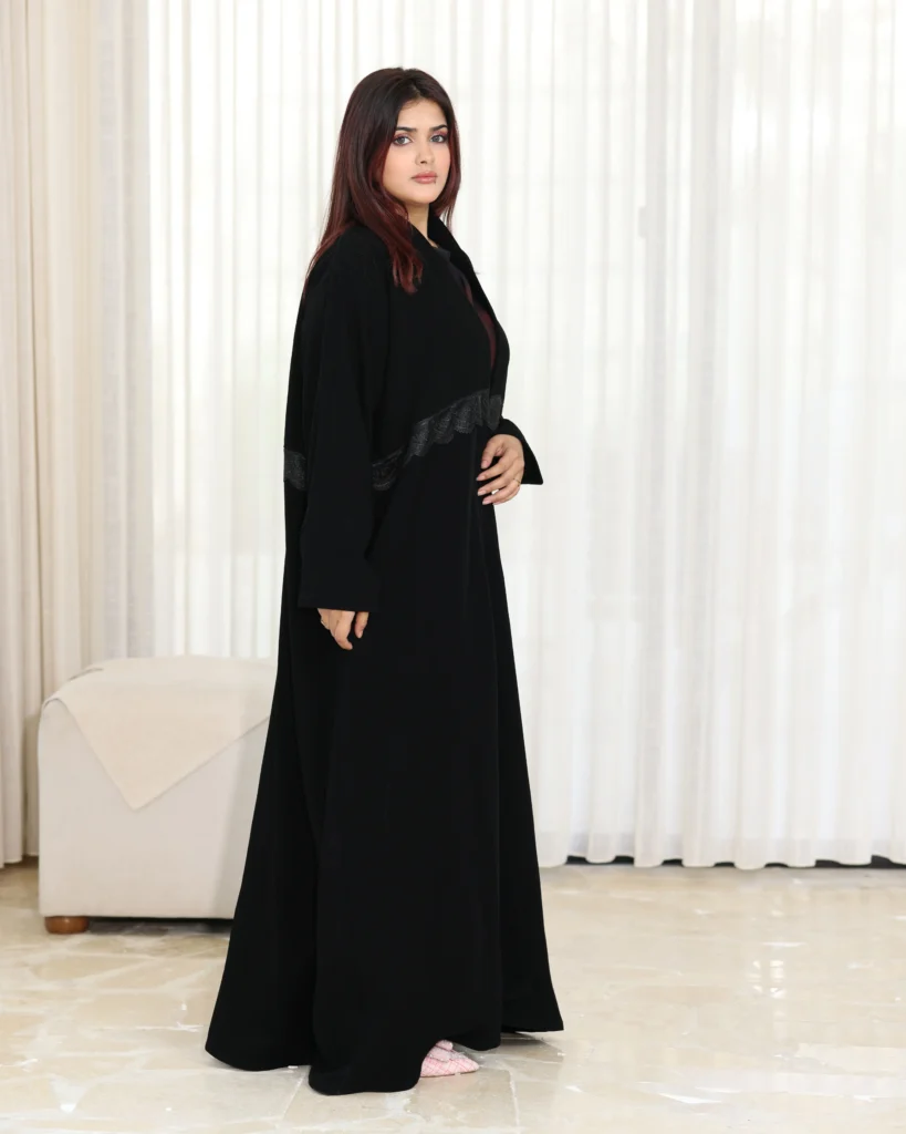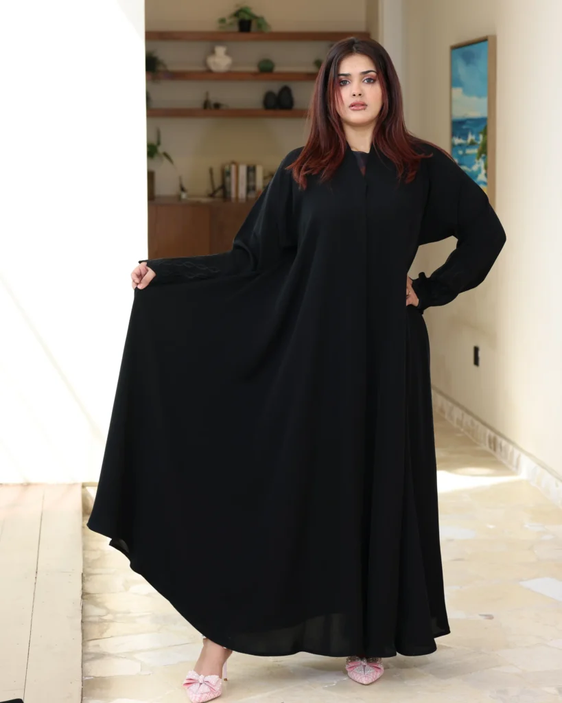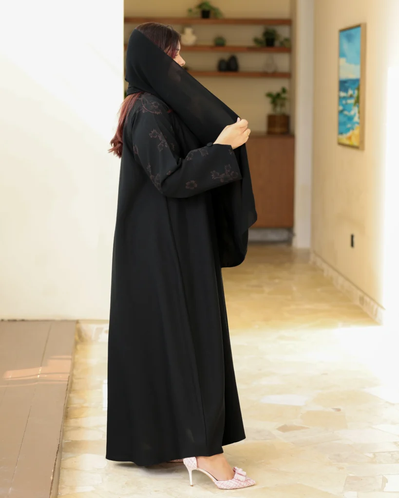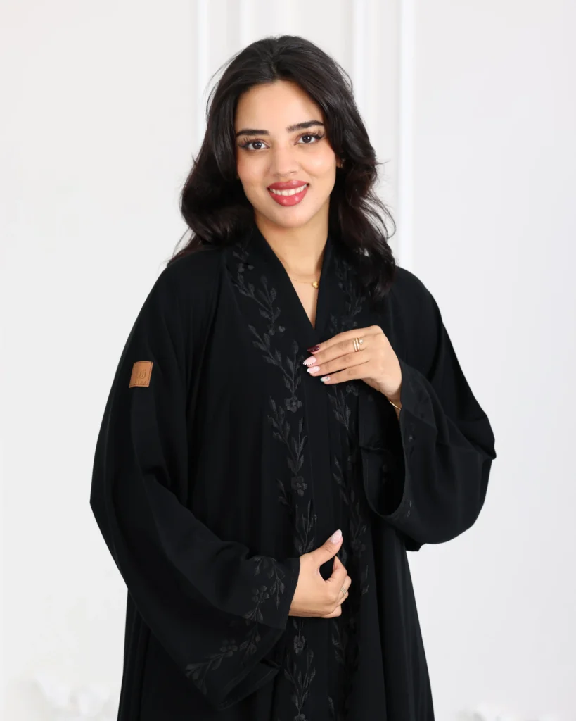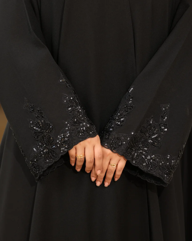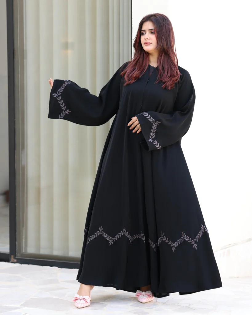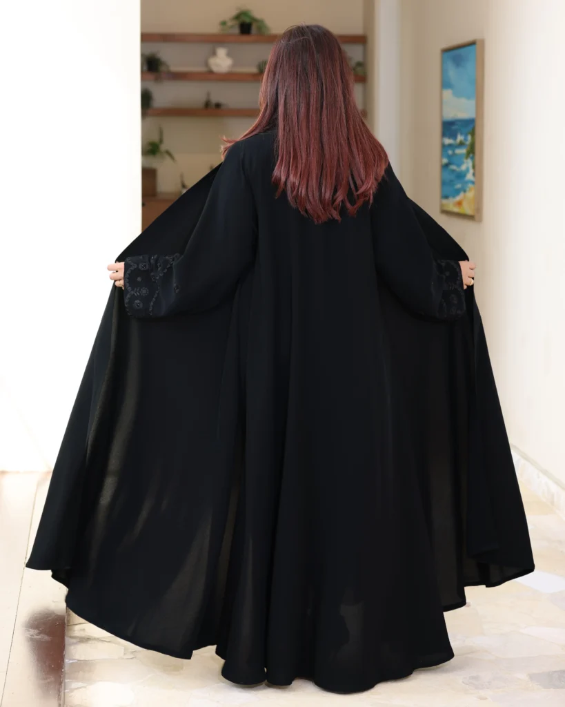 عباية لاميرا مطرزة باسود من اكمام واسفل العباية