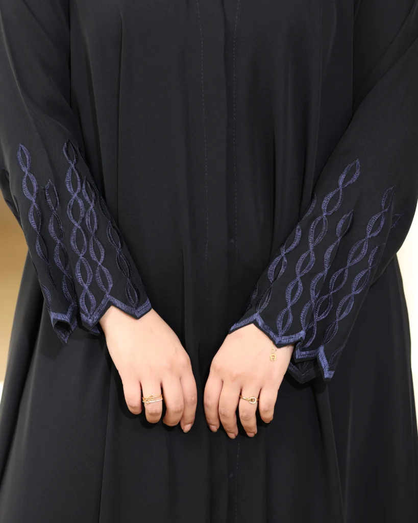 عباية ايفانز كلوش مطرزة بكحلي على اكمام و طرحة