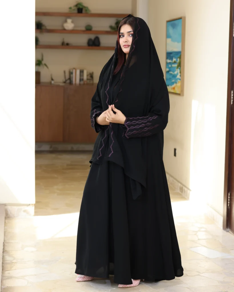 عباية لاميرا مطرزة موف من اكمام واسفل العباية