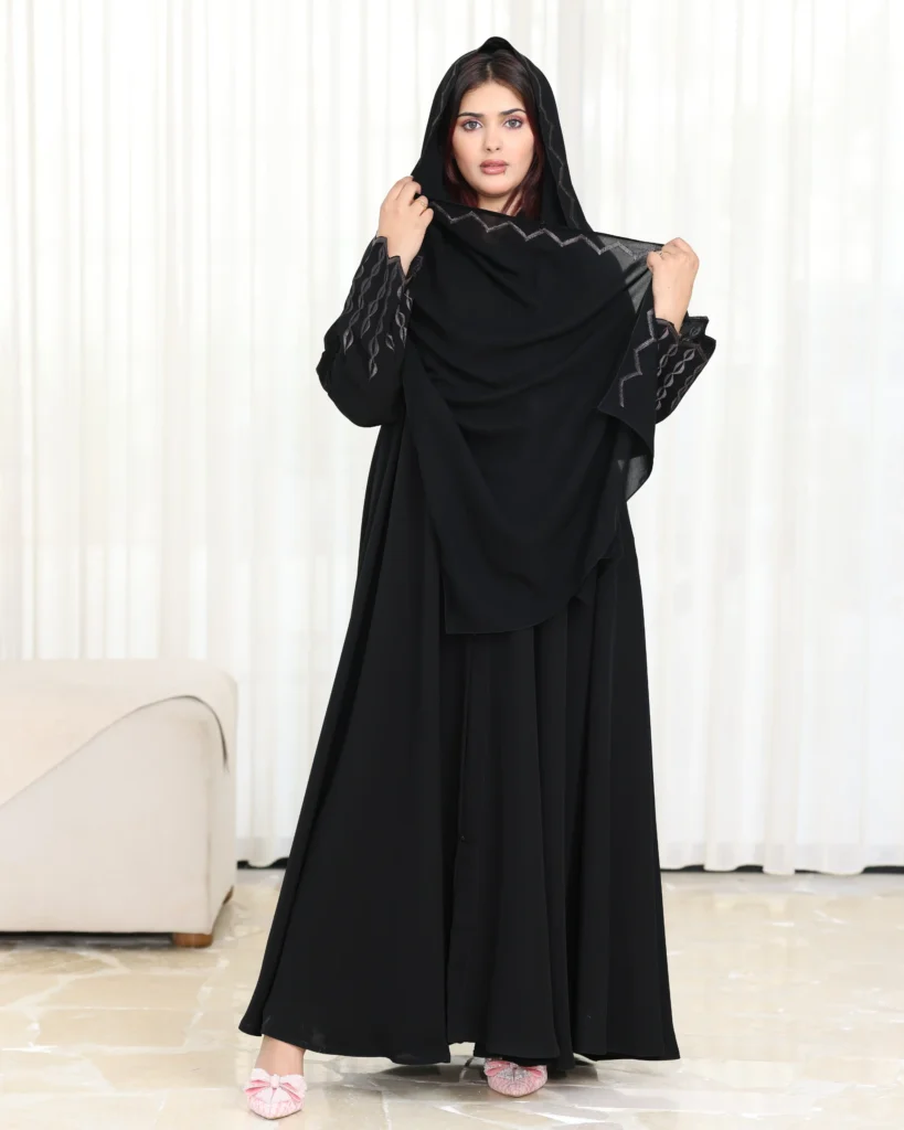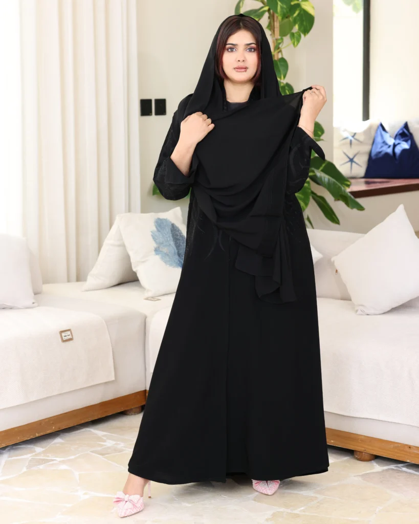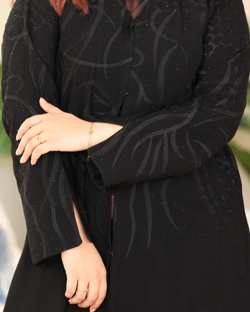عباية سدن مطرزة بالاسود مع فصوص 0886