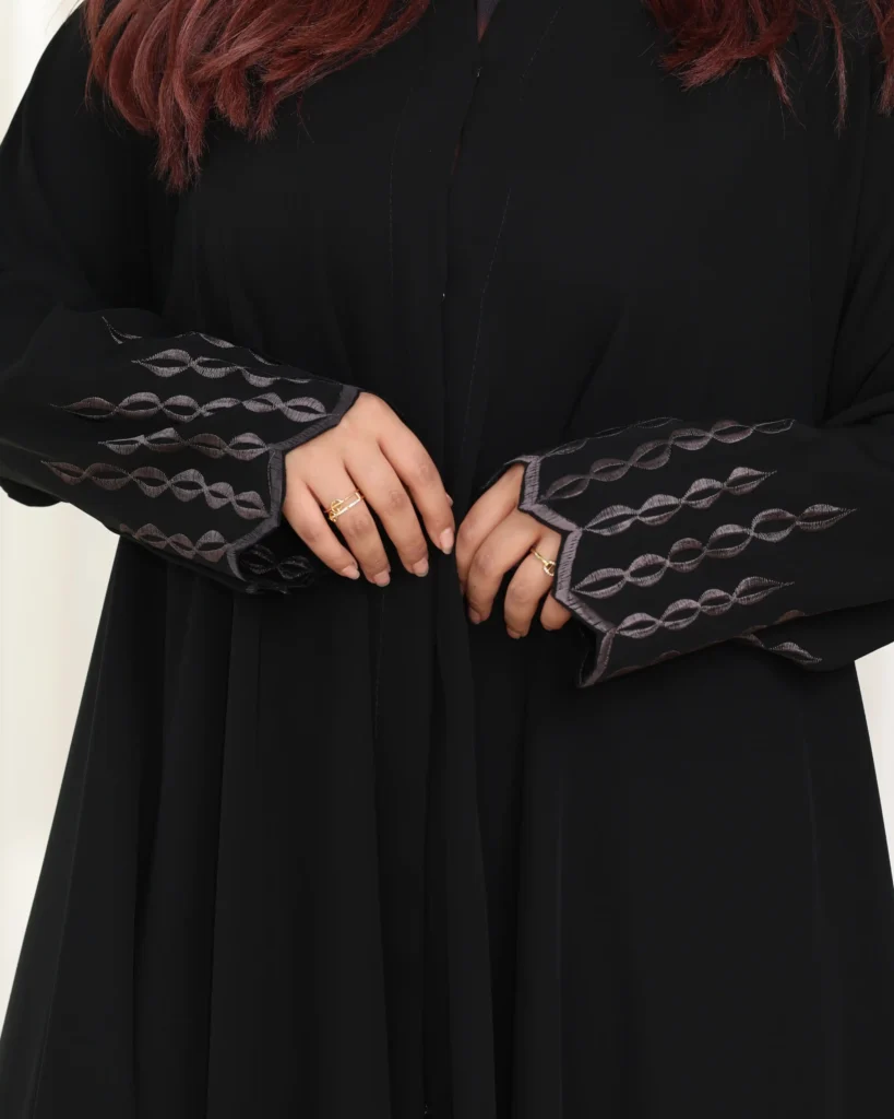 عباية جودة كريب مطرزه بشك اسود على اكمام 0906
