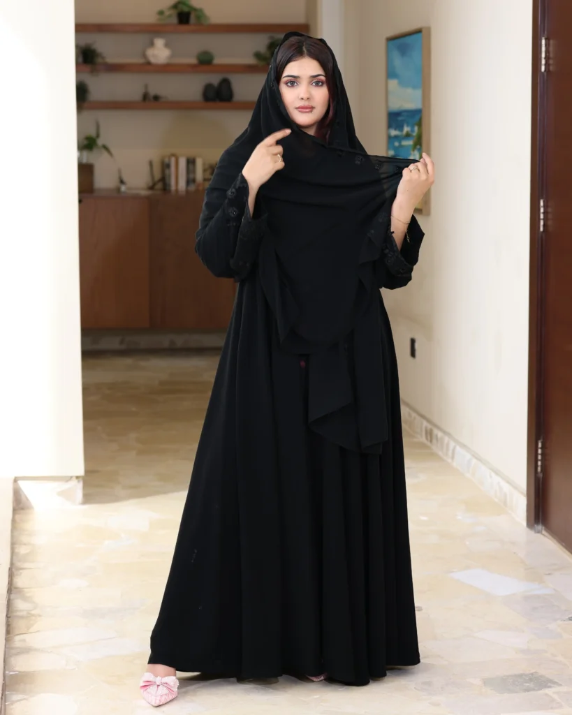 عباية موديل قطري بشك و طرحة نفس تطريز