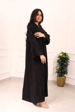 عباية كلوش بكسر من خلف و محدد بفصوص اسود