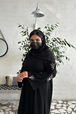 عبايه بشك ملون على اكمام بشكل و رورد ملونه