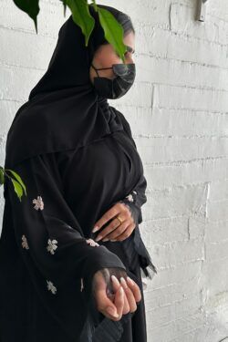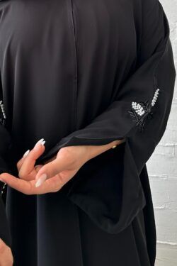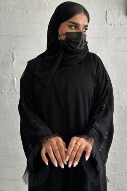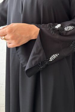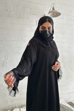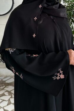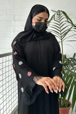 عبايه نواعم بشك على اكمام على شكل ورود اسود