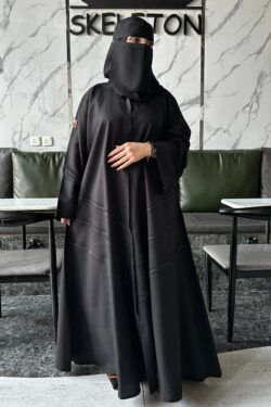 عبايه كلوش ساده منسوجة بقماش كريب واقف (مينى ميت) محدده بخيوط مخفى بالأسود