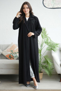 عباية بليزر كريب بشك اسود و خيوط مخفية بشك