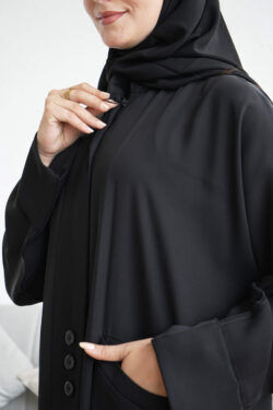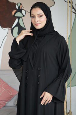 عباية عملية بسحاب مخفي مزينه بزراير من الأمام نص كلوش