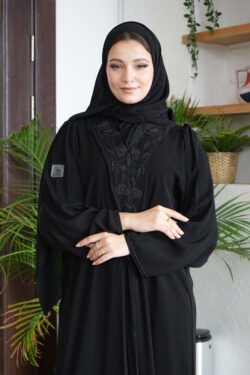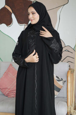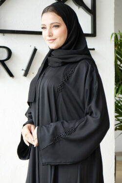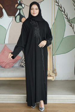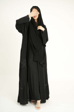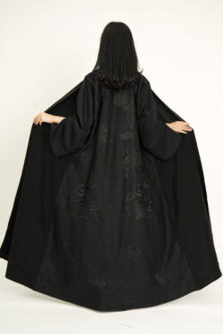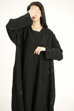 عباية بلاك مطرزه بدقات ورود من الاطراف