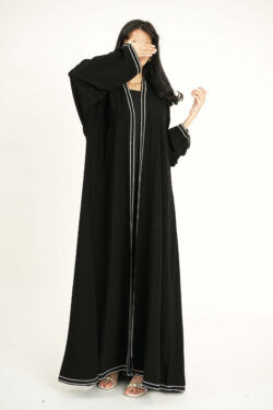 عباية كلوش كريب محدده بخيوط ابيض ناعم مع طرحة