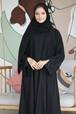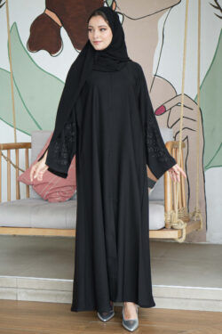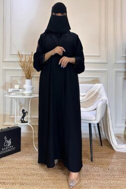 عباية كتف بتطريز اسود مخفي على اكمام