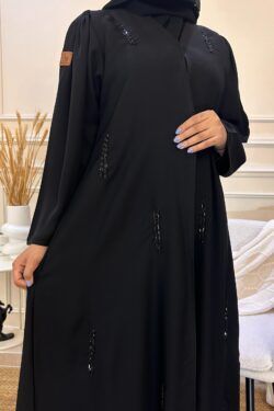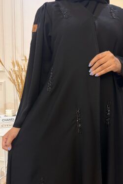 عبايه ترف بشريط ورود اسود