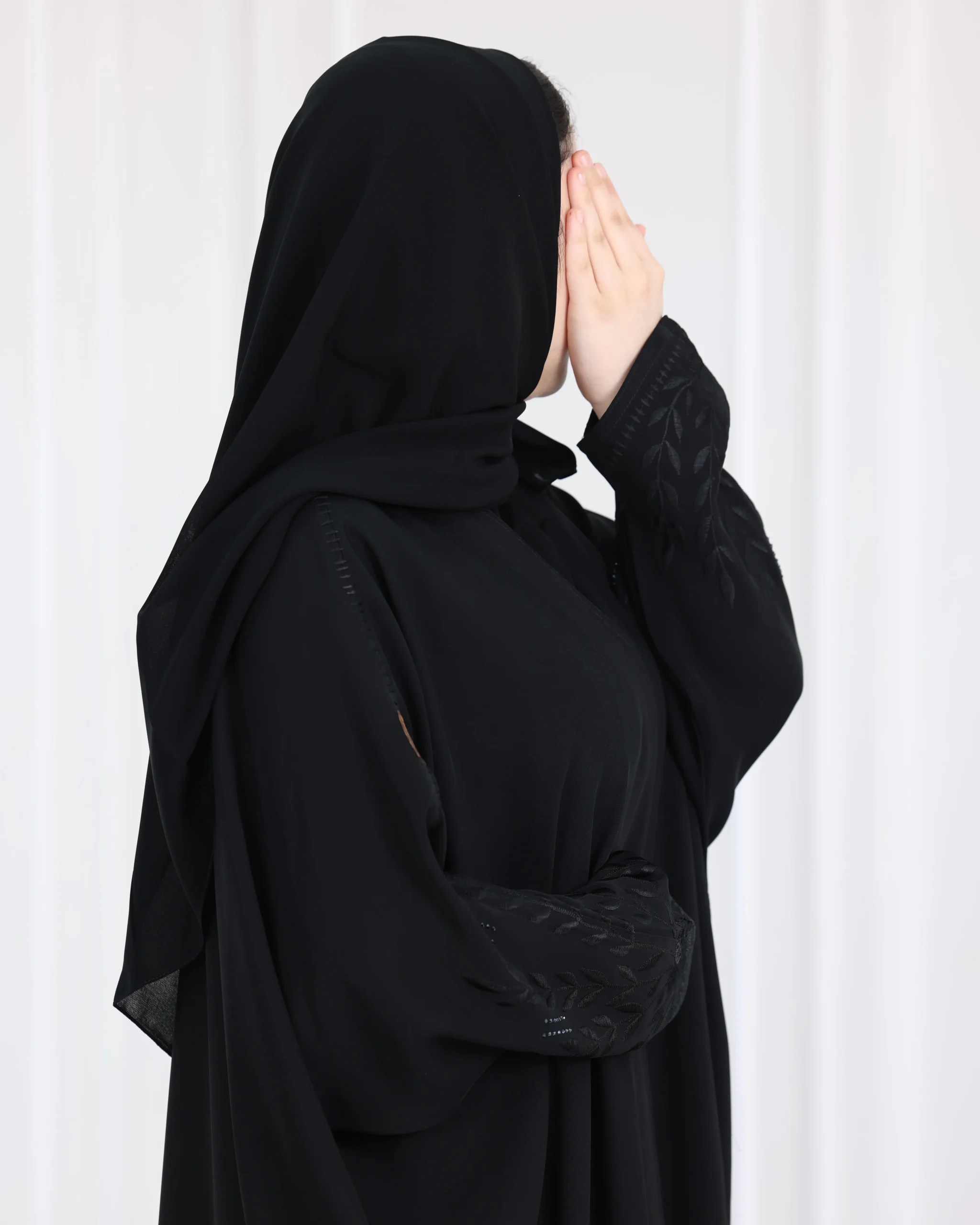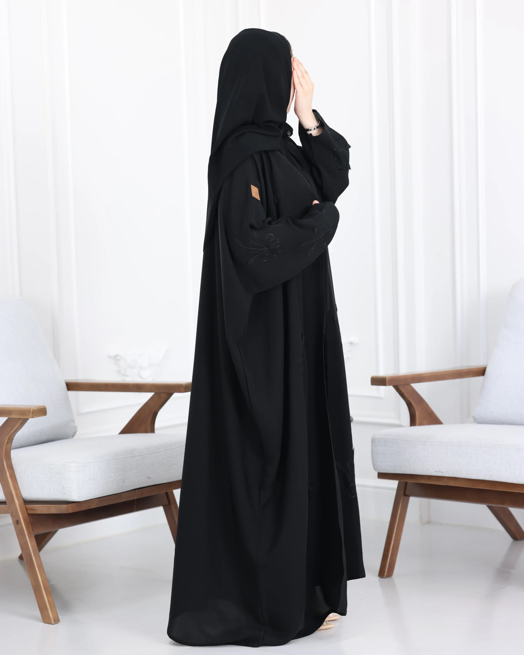 عباية رنا اسود ناعمة بكسرة من الخلف