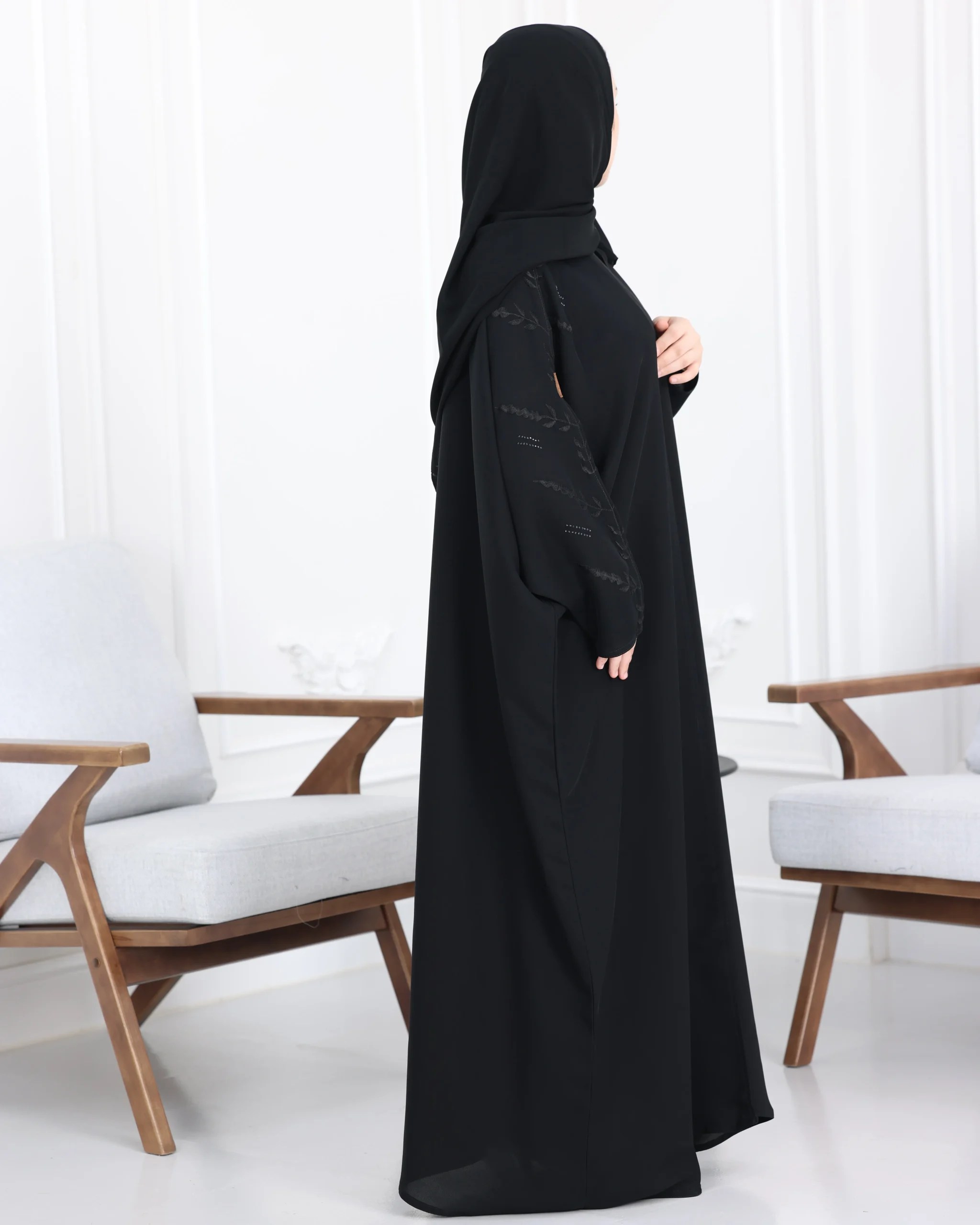 عباية احلام كلوش مزينة بخيوط مخفية اسود ناعم