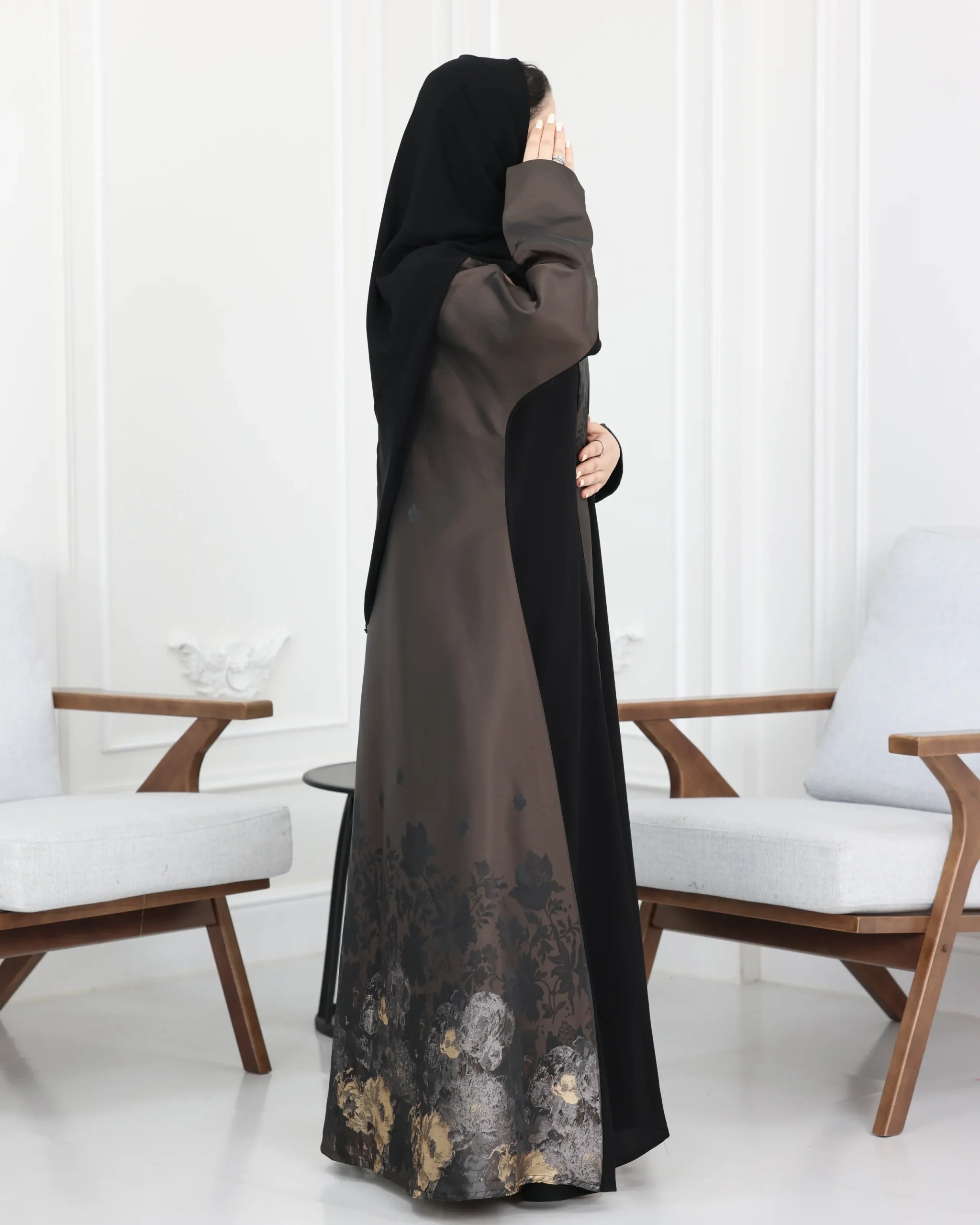 عباية لميس جاكار بني من الخلف مرسومة بورود