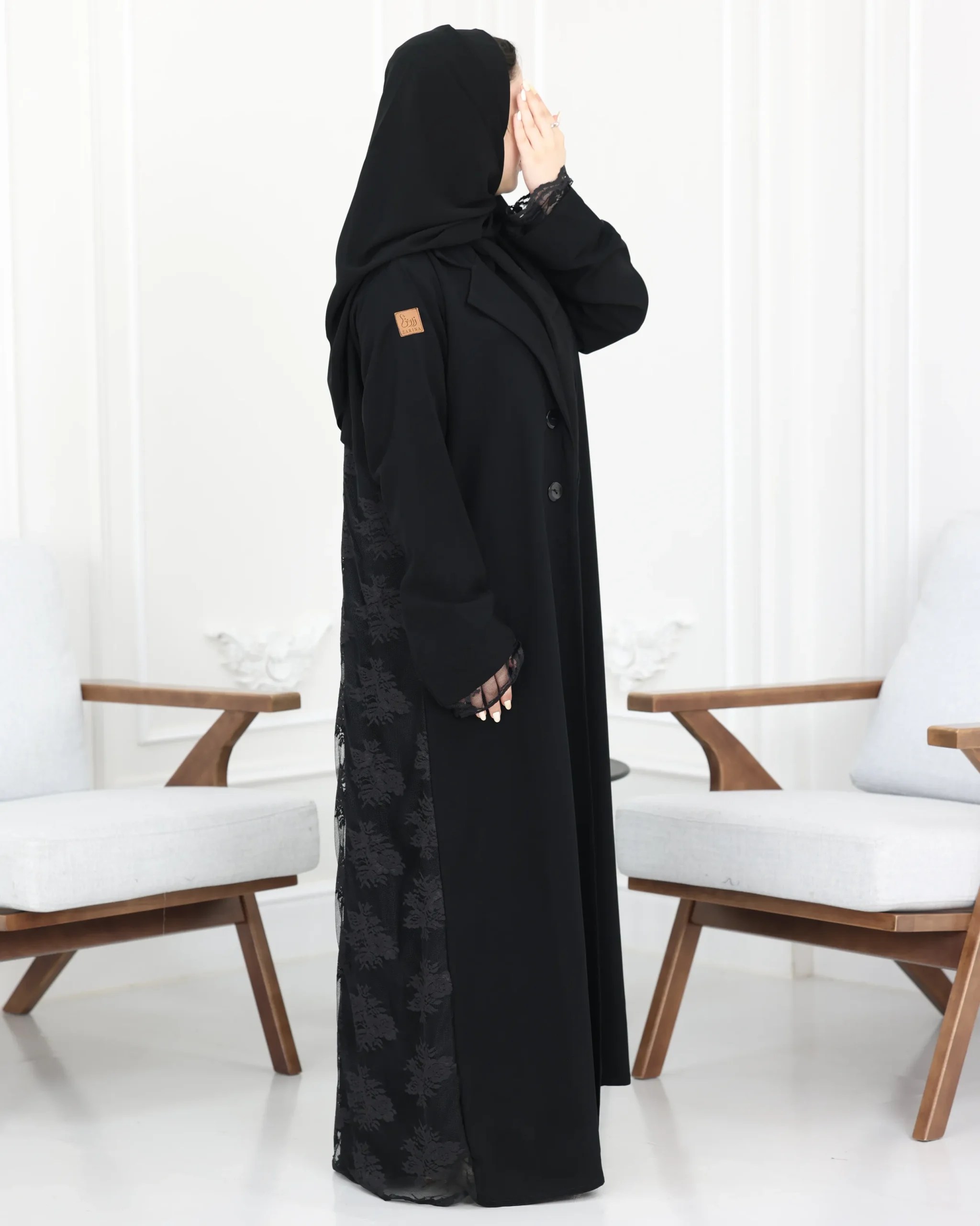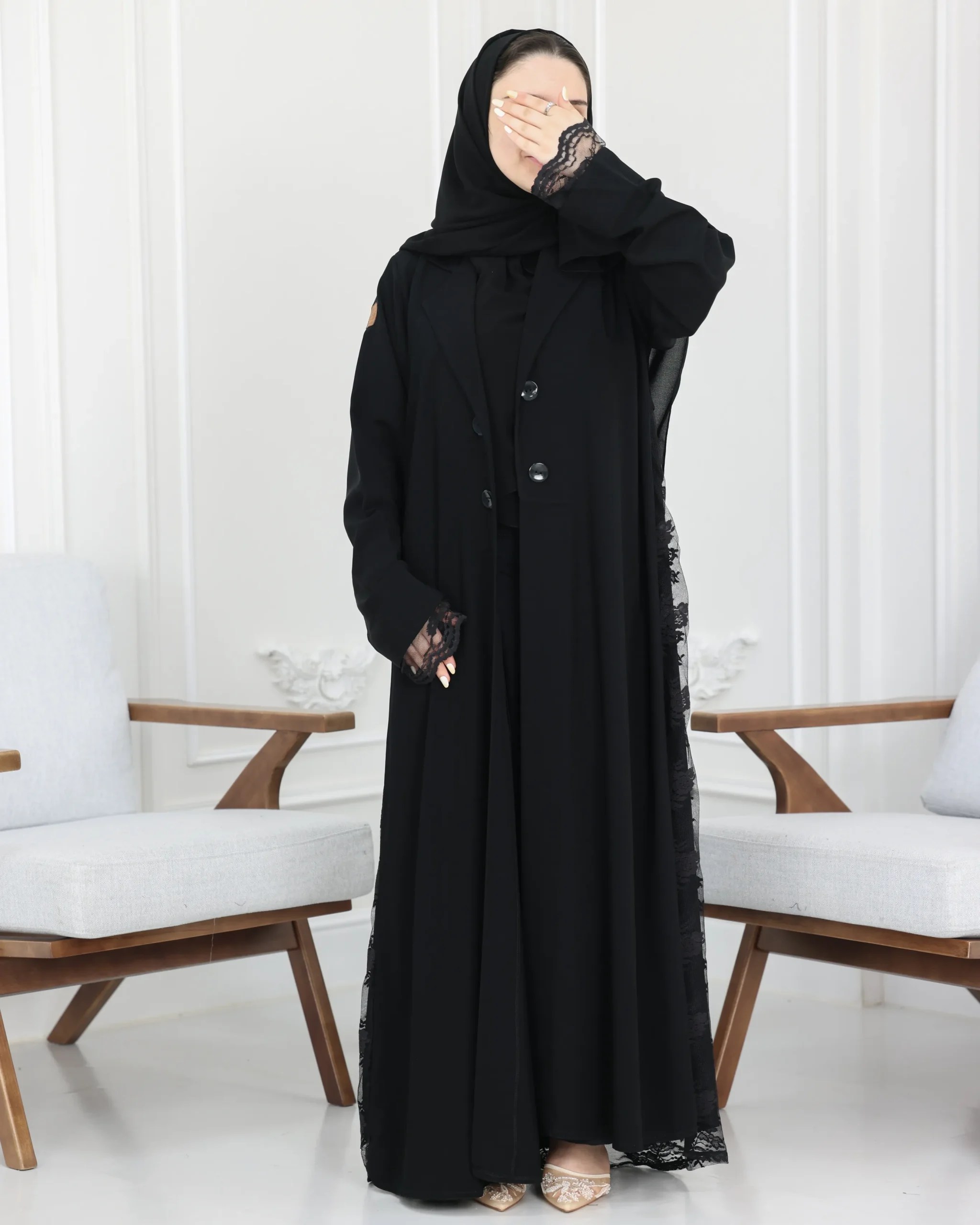 عباية بليزر بدانتيل من خلف وقماش كريب عالي الجودة