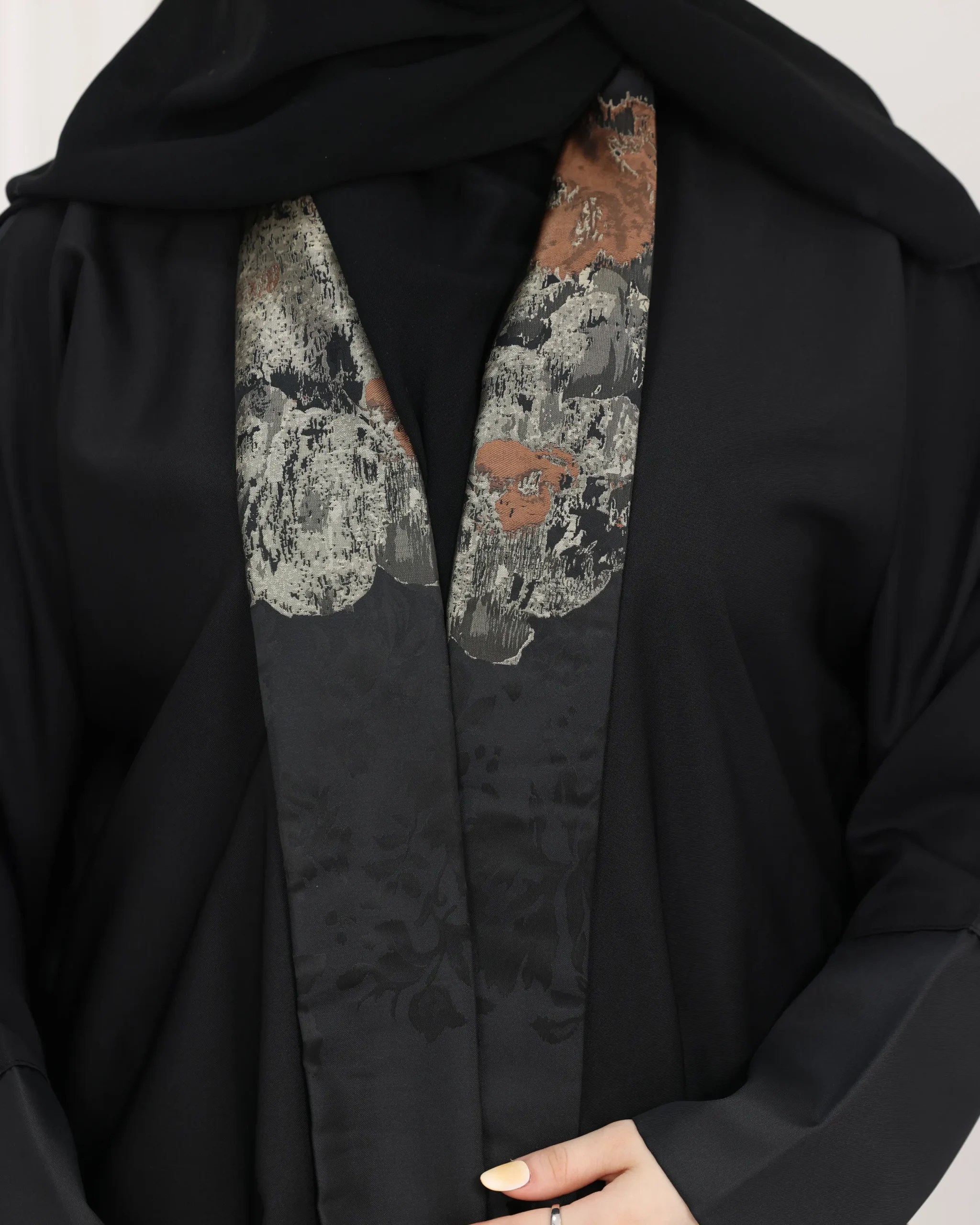 عباية لميس جاكار اسود من الخلف مرسومة بورود