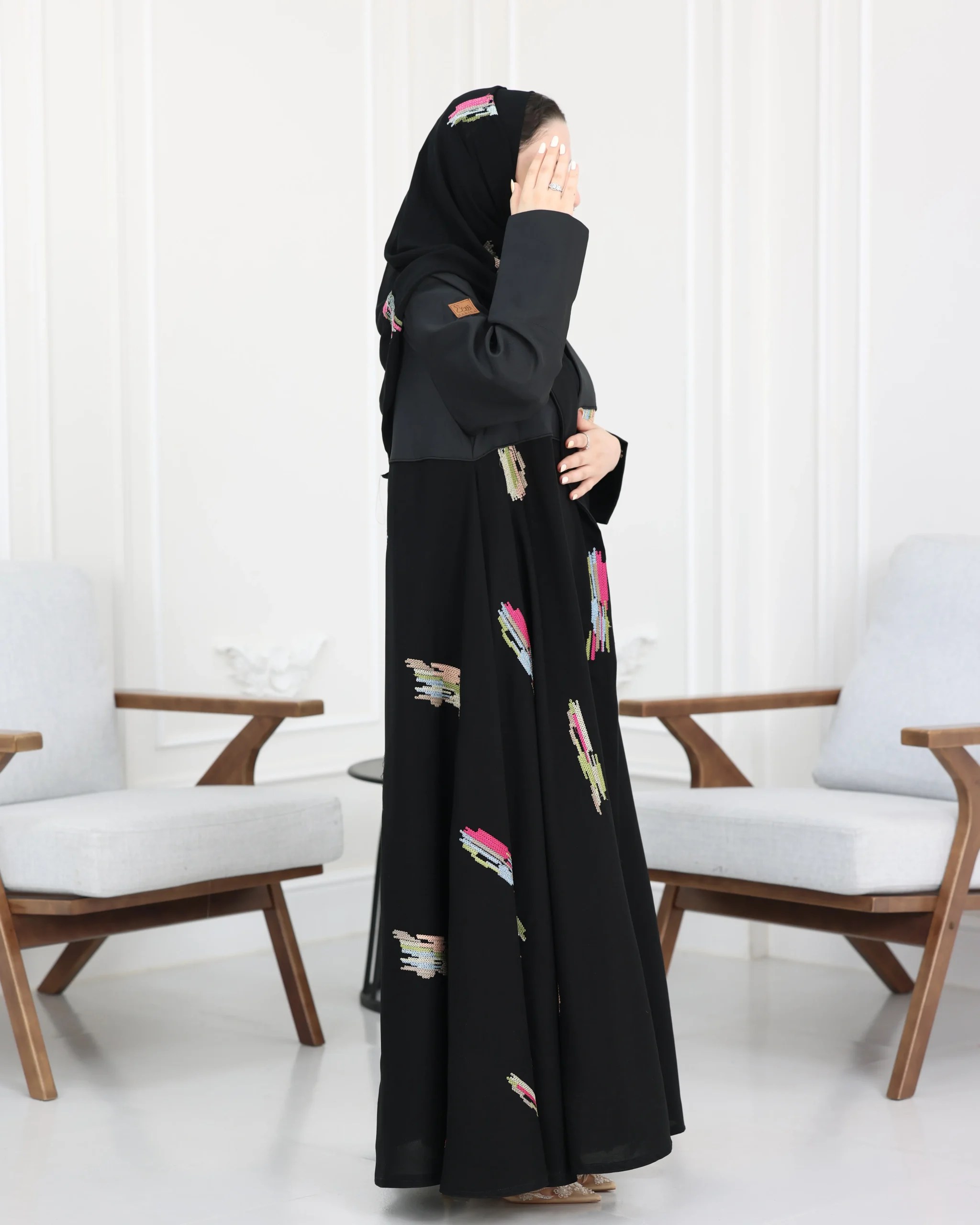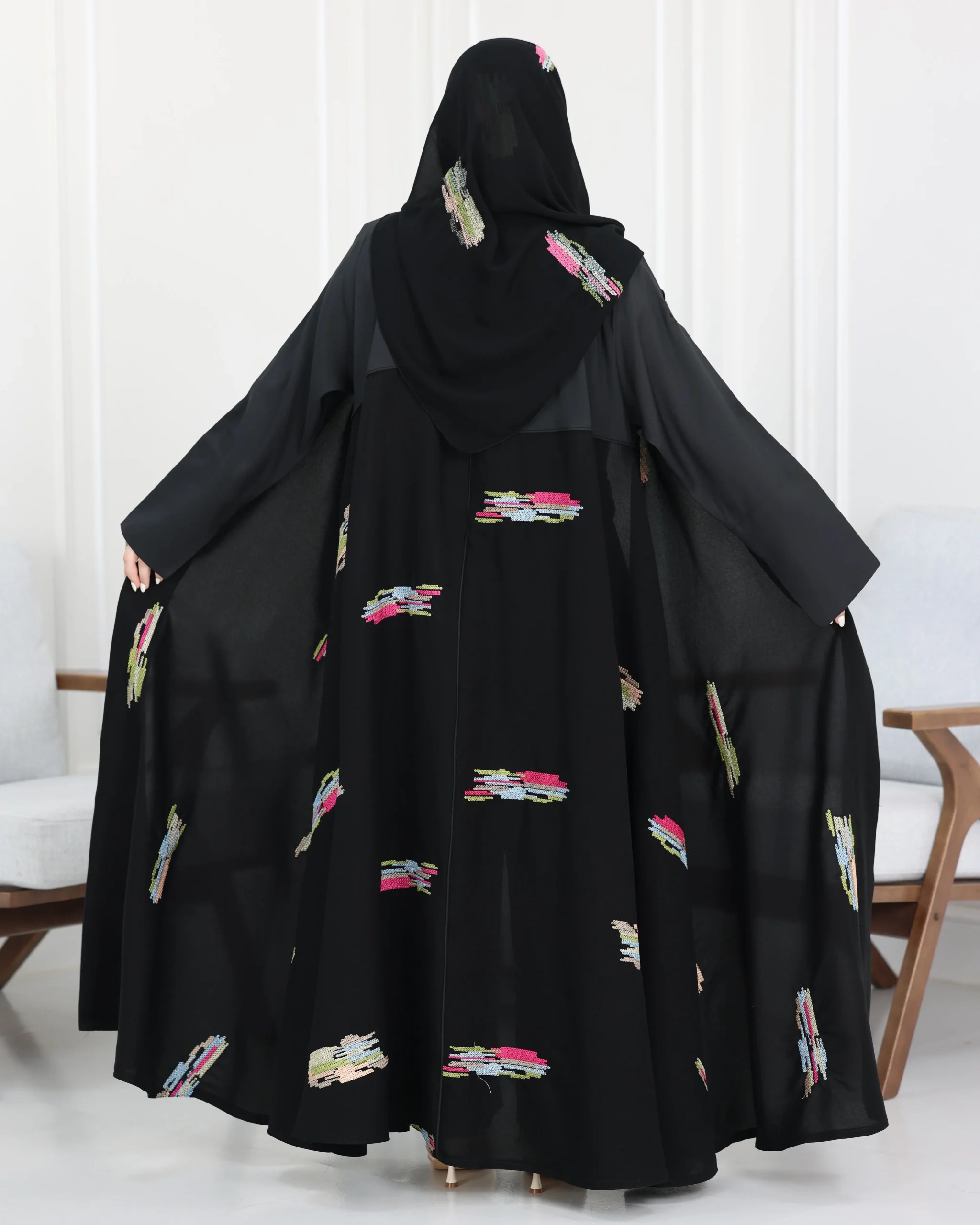 عباية الوشاح محدد بخط أسود في الأكمام بشك و تطريز أسود