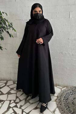 عبايه كلوش بلياقه دبل و اكمام مطرزه بشك مخفي