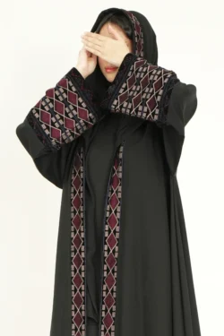 عباية برغندي كلوش بتطريز كلفه مخمل عنابي