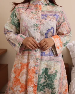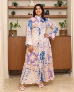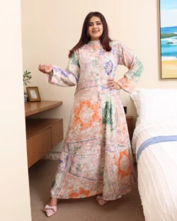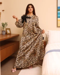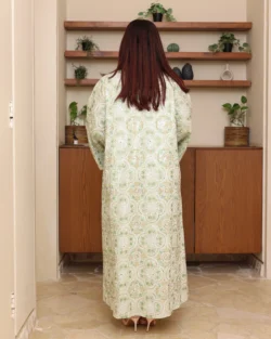 جلابية تيفاني مرسومه باوراق شجرة بالوان و مفصصة