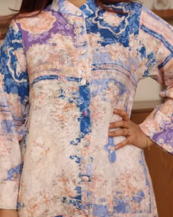 جلابية تيفاني ملكي قطعتين بتطريز دقات ملونة من الأمام و اكمام