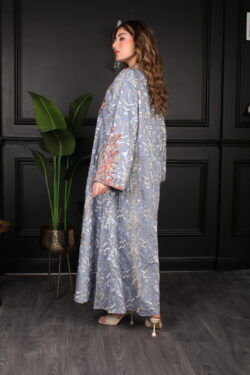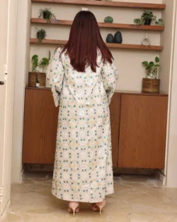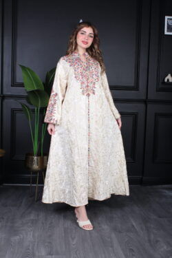 جلابية بياقة تيفاني بترتر وتطريز كامل بورود