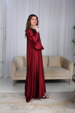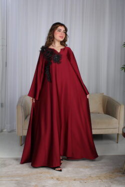 جلابية مخاوير عنابي مطرزة بوردة فخمة وأنيقة