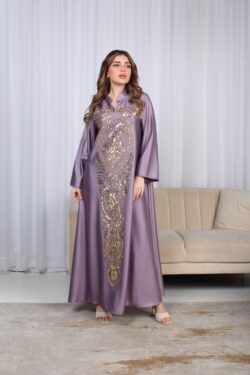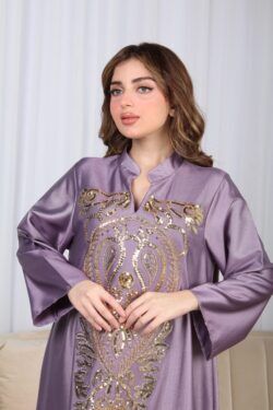 جلابية موف وترتر ذهبي خليجيه بياقة و شك