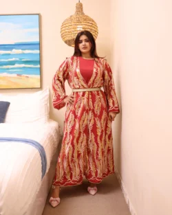 جلابيه احمر خليجيه بشك ترتر و فصوص ذهبي