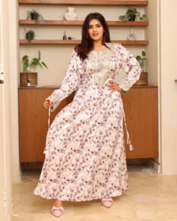 جلابية مخاوير نمرى مطرزة بوردة فخمة وأنيقة