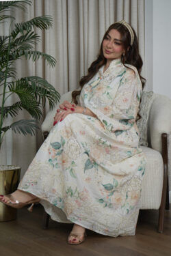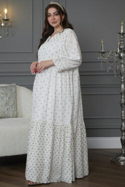 جلابيه ابيض كويتيه ترتر كامل على شكل ورود صغير
