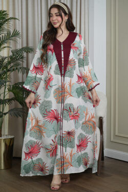 جلابيه مزينه بالاحمر بدقات شرايط عنابي من امام