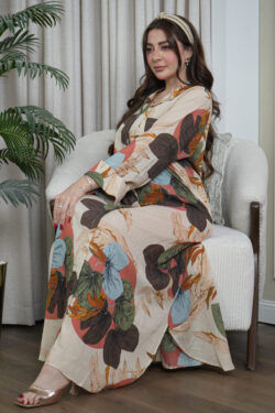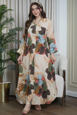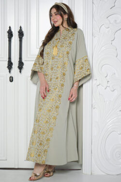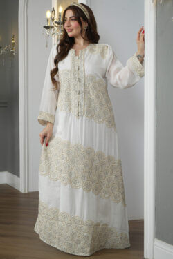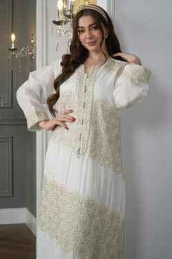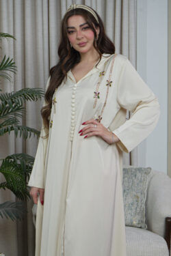 جلابية مغربي بيج بتطريز خرز لامع