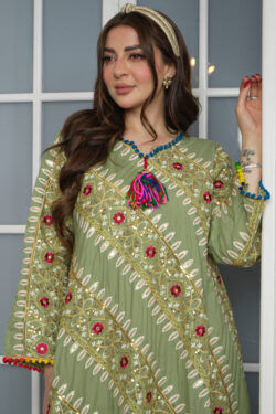جلابيه اخضر بترتر على شكل خطوط