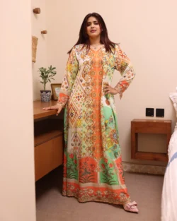 جلابية خربزي حرير بالوان مشجره و فصوص