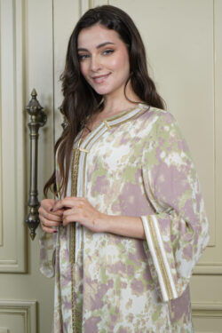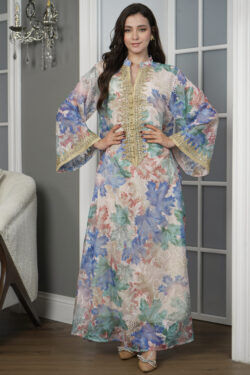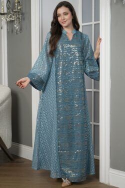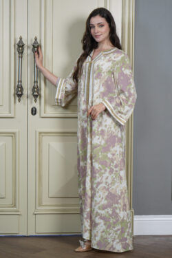 جلابيه تيفاني حرير مورده و شريط ذهبي من امام