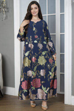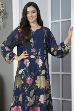 جلابيه ازرق قطن بلياقه مشجره بورود زهريه (4)