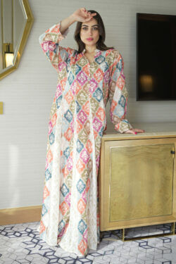 جلابية خربزي مزينه بدقات زرار من امام