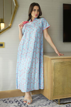 جلابية وردي مطرزة بشك من حلق بلون رمادي