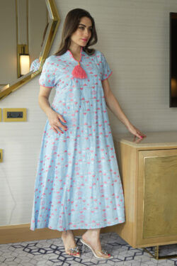 جلابية سماوى بدقات مثلث وردي و ابيض
