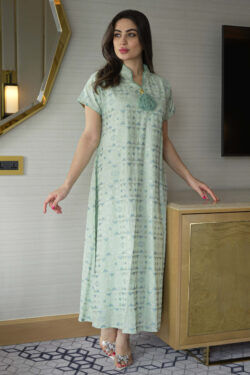 جلابية تيفاني بدقات مثلث اخضر و رصاصي