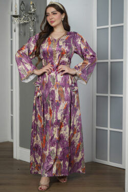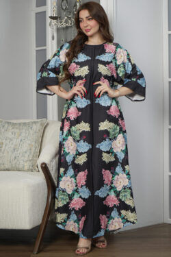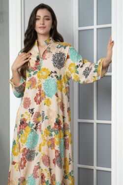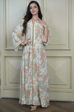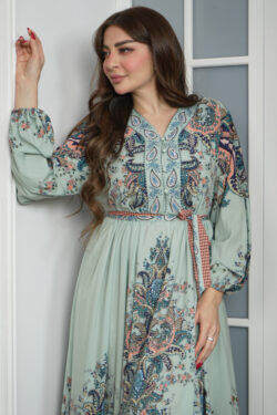 جلابيه تيفاني بكسر من خصر و مرسومه بورود ملون