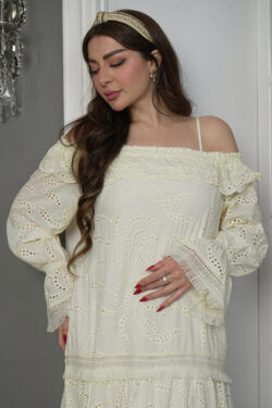 فستان ابيض لنن بكسر