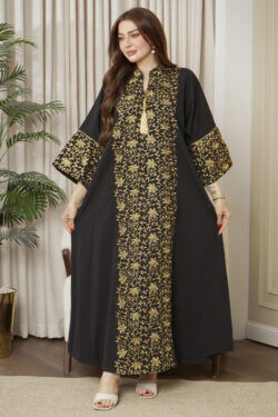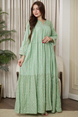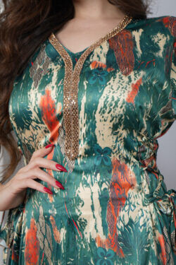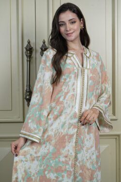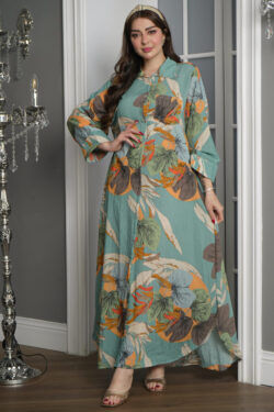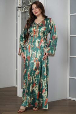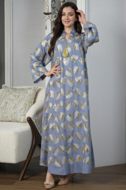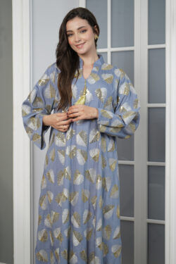 جلابيه تيفاني قطن بلياقه مرسوم على شكل ورق شجر (3)