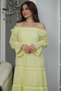 فستان اصفر لنن بكسر