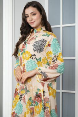 جلابيه بيج بلياقه مشجره بورود ملون (٥)