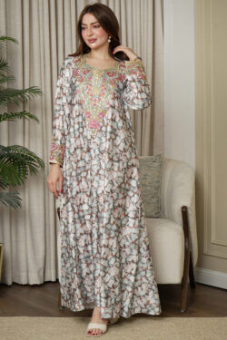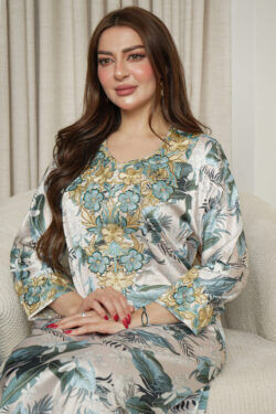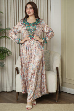 جلابيه تيفاني باكمام و حلق مزينه بدقات خيوط ترتر