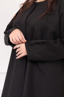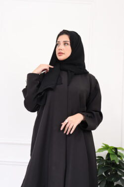 عباية ثلاث قطع أسود طقم قماش كريب واقف