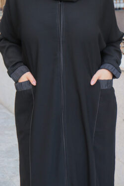عباية بجيوب جانبية مميزه و أكمام مزينه بفايفين